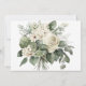 Design apresenta um elemento floral impresso em tons de azul empoeirado e ouro sobre folhas verdes e floradas de pedras e rosa. Excelente para as comemorações do casamento!
