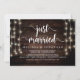 Recem casados, Anúncio de Elopemento de Casamento/Cartão de Convite, em Madeira de fazenda Rústica, design de Luzes de Corda. Isto é perfeito para a sua recepção de casamento e festa de celebração de posto. Adicione seus detalhes em fontes / letras correspondentes. #TeeshaDerrick