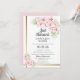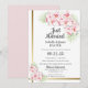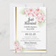 Um convite elegante para recepção pós-casamento com orquídeas rosa e uma borda assimétrica dourada sofisticada.