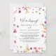 Este clássico cartão colorido de recepção de elopementos é perfeito para um moderno partido de elopemento poste. A design apresenta flores silvestres brancas, amarelas, roxas e brancas com folhagem em fundo de rosa e aquarela verde. As placas RSVP são vendidas separadamente.