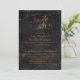 Este moderno e elegante conjunto de convites de casamento e evento combina algumas tendências simples de design de casamento de uma forma fresca. Sobre uma textura de fundo de mármore preto, usei uma fonte de caligrafia moderna e bonita da minha coleção para renderizar gráficos que representam as palavras "celebre conosco", apresentando enfeites espiralados. As palavras foram decoradas com um efeito metálico de folha de cobre falso. O texto editável é renderizado em uma fonte serif versátil usando uma tonalidade de cobre coordenada. A palavra "amor", decorada com cobre e usando a mesma fonte de script, foi adicionada diagonalmente ao verso. //