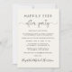 Elegante anúncio de casamento ou fuga romântica em tom creme claro para informar familiares e amigos sobre o seu casamento ou fuga romântica, e para convidá-los para uma recepção de casamento ou festa de celebração. Na frente, "Festa Feliz para Sempre" está escrito em uma mistura de tipografia simples e uma escrita elegante com floreios, e você pode personalizar sua mensagem e convite com mais detalhes e adicionar seus nomes em uma escrita semelhante a uma assinatura. O verso apresenta seus primeiros nomes e as datas do casamento e da recepção.