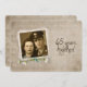 Convite de recepção para aniversário de 65 anos de casamento com moldura de foto personalizada antiga e buquê de margaridas e pérolas.
