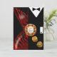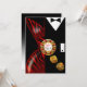 Um sofisticado casal art déco vestido com trajes de gala - ela com um vestido vermelho com estampa de zebra decotado e ele com um smoking preto elegante. O centro da peça é uma ficha de cassino que contém texto personalizado e dados dourados caindo. Quer você esteja se casando em Las Vegas ou ficando na sua cidade natal e organizando um evento com tema de cassino, este convite versátil e moderno é perfeito para qualquer ocasião especial - festas de aposentadoria, aniversários marcantes, jantares e coquetéis, jantares de ensaio, recepções de casamento, aniversários de casamento, eventos semi-formais e formais ou festas de fim de ano. Fácil de personalizar, use o botão "Personalizar" acima para adicionar seu próprio texto. Adesivos de favor também disponíveis. Para perguntas ou pedidos especiais, entre em contato com o designer em cheryl@cheryldanielsart.com. Se este convite não for exatamente o que você está procurando, todos os meus produtos podem ser personalizados para atender às suas necessidades específicas. Convite "Recepção de Casamento Art