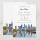 Este convite de recepção de casamento elegante com aquarela do horizonte de Filadélfia 'nada sofisticado, apenas amor' pode ser personalizado com suas informações em tipografia chic. Criado por Thisisnotme©