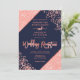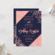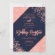 Carteira geométrica de brilho de coral elegante e tipografia de blocos coloridos em cartão de recepção de casamento geométrico de folha de coral azul e falso, perfeito para casamento elegante e luxuoso,