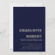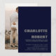 Convide seus amigos e entes queridos com este azul marinho minimalista na moda com o convite de recepção de casamento de texto de cinza com uma foto dos recém-casados nas costas para compartilhar sua alegria em seu casamento recente. Para obter melhores resultados, ajuste a imagem escolhida para o verso do recorte de convite para uma proporção de 5 x 7.