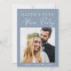 Moderno elopemento azul empoeirado ou anúncio privado de casamento e convite de recepção. A frente mostra sua foto, "Feliz Festa Depois" em uma simples tipografia branca e um guião branco-chic e seus nomes e data de casamento. Ao contrário, personalize seu anúncio e convite e adicione seus nomes em um script semelhante a assinatura.