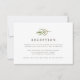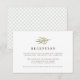 Elegantes cartões de recepção de casamento com ilustração de ramo folhoso em verde terroso e bege no topo. Personalize com os detalhes da recepção do seu casamento, horário, local e endereço em letras em verde oliva discretas. Os cartões de resposta têm no verso um padrão de treliça de diamante sutil em oliva e branco. Projetado para combinar com nossa coleção de casamento botânico Greenery.