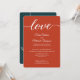 Paleta de cores de casamento elegante e sofisticada em tons terrosos quentes, com laranja queimado, convite de recepção de casamento Elopement verde. Este design apresenta um moderno script de caligrafia "Love". Personalize este convite de recepção de casamento com os nomes da noiva e do noivo e todos os detalhes da festa sobre o Elopement e a recepção de casamento. Inclua também um site de casamento para RSVP. Este design de layout chic e elegante é fácil de personalizar. Para um casamento de outono.