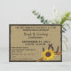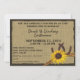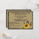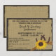 Girassol e ferraduras, convites rústicos com a aparência de aniagem para uma recepção de casamento estilo churrasco casual. Todas as partes deste convite são impressas.