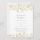 Este clássico convite à recepção de casamento de flores silvestres é perfeito para um moderno partido de elopemento poste. O design apresenta uma elegante e elegante cor d'água, pincelada, rosa, flores silvestres multicoloridas desenhadas à mão, perfeitamente organizadas em buquês atraentes. As placas RSVP são vendidas separadamente ou você pode usar os detalhes RSVP na parte traseira ou na parte inferior da placa.