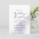 Este convite de recepção de casamento roxo com efeito de aguarela é perfeito para uma festa pós-casamento moderna. O design simples e clássico apresenta um toque de cor roxa lavanda pastela com estilo minimalista elegante. Os cartões de RSVP são vendidos separadamente, ou você pode adicionar informações de RSVP no verso do cartão.