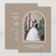 Um convite de recepção de casamento moderno com arco bege personalizado para casais que escolheram trocar votos em uma cerimônia privada (ou fugir) e desejam compartilhar a alegria de seu casamento recente com amigos e entes queridos em uma festa pós-casamento.