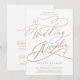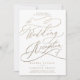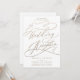 Este convite de recepção de casamento com caligrafia dourada romântica é perfeito para uma simples festa pós-fuga. O design moderno clássico apresenta redemoinhos extravagantes e floreios caprichosos com tipografia elegante e falsa folha de ouro champanhe. Cartões de RSVP são vendidos separadamente, ou você pode adicionar informações de RSVP no verso do cartão.