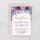 Cartões de Recepção de Casamento com Champanhe Dourado, Listras e Confetes Florais Roxos em Aquarela com fonte de pincel moderno! ~Verifique minha loja para ver todo o conjunto de casamento para este design!