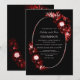 Um convite de recepção pós-casamento preto elegante com uma arranjo floral vermelho borgonha rústico em uma moldura oval. Perfeito para aqueles que escolheram se casar em privado, mas ainda querem celebrar com amigos e entes queridos depois.