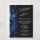 Um convite de celebração pós-casamento personalizado moderno com foto floral preta e azul.