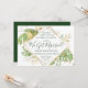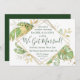 Este convite de recepção de casamento com tema tropical elegante apresenta folhagens exóticas com detalhes em dourado. Uma moldura geométrica moderna dourada destaca o texto em verde escuro. Salpicos dourados acentuam o desenho botânico e trazem um pouco de sofisticação extravagante para o convite. "Casamos!" está destacado no meio do convite. Este é o anúncio de casamento e convite de recepção perfeito para qualquer casamento com tema tropical.