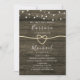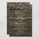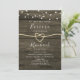 Convide os convidados com estilo com este convite de recepção de casamento rústico elegante e moderno. Com um fundo de madeira de celeiro, luzes de corda, um coração de corda dourada chique e uma escrita caligráfica simples, ele mistura perfeitamente o charme rústico com sofisticação romântica.