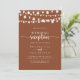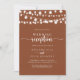Esta corda ilumina o convite da recepção de casamento de terracota é perfeito para uma simples festa de elopemento poste. A design apresenta belas luzes de cordas pintadas manualmente em um fundo de terracota. As placas RSVP são vendidas separadamente ou você pode usar os detalhes RSVP na parte traseira ou na parte inferior da placa.