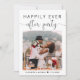 Elegante ou anúncio privado de casamento e convite de recepção. A frente mostra sua foto do dia do casamento e "Feliz Festa Sempre" em uma mistura de simples tipografia e um roteiro de chic com baloiços. Em sua foto, adicione seus primeiros nomes e a data do casamento. No verso, insira seu endereço de URL do site de casamento para criar um código QR para seus convidados pesquisar todos os detalhes e RSVP on-line, personalize seus detalhes de lançamento e recepção e adicione seus nomes em um script semelhante a assinatura.