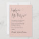 Na moda blush cor-de-rosa convite para recepções de casamento com "Felizmente Nunca Depois da Festa" em um script moderno chic e seus nomes em um script semelhante a assinatura. No verso, faça o upload da sua foto e insira o endereço do seu site de casamento para criar um código QR que os seus convidados podem digitalizar para RSVP on-line e obter detalhes adicionais.