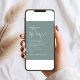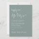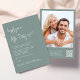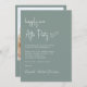 Convite minimalista de recepção de casamento verde sábio com "Feliz Nunca Depois da Festa" em um roteiro branco-chic, seu convite na tipografia clássica de serifa branca e seus nomes em um roteiro branco parecido com assinatura. No verso, adicione sua foto e insira o endereço do seu site de casamento para criar um código QR que seus convidados podem digitalizar para RSVP on-line e obter detalhes adicionais.