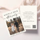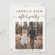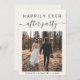 Elegante elopemento de creme leve ou anúncio de casamento menor e convite para recepções de casamento. A frente apresenta sua foto e "Feliz Festa Depois" em uma mistura de simples tipografia e um roteiro de tendências com pestanas. Sob sua foto, seus primeiros nomes e a data do casamento estão unidos por um coração. No verso, personalize seus detalhes, insira seu endereço no site do casamento para criar um código QR para os convidados digitalizarem suas fotos de casamento, todos os detalhes e para RSVP on-line, e adicione seus nomes em um script semelhante a assinatura.