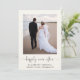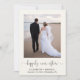 Elegante e creme leve ou anúncio de casamento e recepção de casamento postada ou convite de festas. A frente mostra sua foto, "feliz para sempre", escrita em um roteiro de na moda com sucos e seus primeiros nomes, data de casamento e local. Ao contrário, personalize seu anúncio de casamento, adicione uma recepção ou convite de festas, insira seu endereço de site de casamento para criar um código QR para os convidados digitalizarem para RSVP on-line e assine seus nomes de casados em um roteiro semelhante a assinatura.