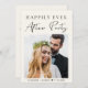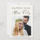 Casamento privado de creme leve moderno ou anúncio de elopemento e convite de recepção que mostra sua foto de casamento, "Felizmente Nunca Depois da Festa" em uma mistura de simples tipografia e um roteiro de chic e seus nomes e data de casamento. No verso, personalize o seu anúncio e convite, introduza o endereço URL do Web site do seu casamento para criar um código QR para os convidados a pesquisar todos os detalhes e a RSVP online e adicione os seus nomes num script semelhante a assinatura.