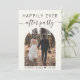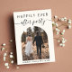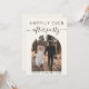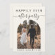 A elopeia moderna de creme leve ou o anúncio privado de casamento e convite de recepção. A frente apresenta sua foto em um quadro de arco inspirado em boho e "Felizmente, nunca depois da festa" em uma simples tipografia e um roteiro de na moda com baloiços. Adicione seus primeiros nomes e data de casamento ou recepção. No verso, personalize seus detalhes e adicione seus nomes em um script semelhante a assinatura.