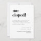 Convite mínimo para Recepção de casamento de Elopemento Branco Negro. Personalize este cartão moderno e simplista com o anúncio de casamento elopedista e recepção de casamento após festa convide informações para família, amigos e convidados.