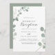 Este convite minimalista de recepção de casamento de eucalipto verde é perfeito para um partido russo de elopemento poste. A design apresenta uma coloração aquosa elegante folhas verdes de eucalipto. As placas RSVP são vendidas separadamente ou você pode usar os detalhes RSVP na parte traseira ou na parte inferior da placa.