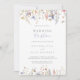 Este convite à recepção de casamento de flor selvagem multicolorido de verão é perfeito para um moderno partido de elopemento poste. O design apresenta uma coloração aquosa, rosa, púrpura, vermelha, burgundy, amarela, flores brancas e borboletas, com vegetação nebulosamente embebida em buquês florais elegantes. As placas RSVP são vendidas separadamente ou você pode usar os detalhes RSVP na parte traseira ou na parte inferior da placa.