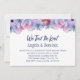 Convite de recepção pós-casamento floral rosa e azul poeira elegante para celebrar sua união recente.