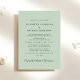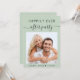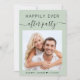 O convite de recepção de casamento verde para o sábio verde com a sua foto, "Felizmente, nunca Depois da Festa" em uma mistura de simples letras e um roteiro de trendy swash e seus primeiros nomes e data de casamento ou recepção juntos por um coração. Personalize seus detalhes de recepção e adicione seus nomes em um script semelhante a assinatura no verso.