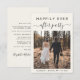 Elegante creme ou pequeno anúncio de casamento e convite de recepção apresentando sua foto e "Feliz Nunca Depois da Festa" em uma mistura de simples tipografia e um roteiro de chic com baloiços. No verso, personalize sua mensagem e adicione detalhes do convite de festa ou recepção e seus nomes em um script semelhante a assinatura.