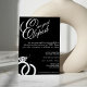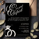 Convite para recepção de casamento branca e preto elegante com anel de diamante brilhante e foto atrás. Personalize-o com os detalhes do evento.