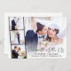 Elegante ou anúncio privado de casamento e convite de recepção apresentando sua foto do dia de casamento, somada com uma faixa de três fotos quadradas menores e "Celebrar conosco" em um roteiro moderno. Adicione seus primeiros nomes, data do casamento e local em uma simples tipografia. No verso, personalize seu anúncio de casamento e seu convite de recepção e adicione seus nomes em um script semelhante a assinatura.
