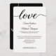 Simples, moderno, tipografia preta e branca com caligrafia "Amor". Personalize este convite de recepção de casamento de fuga romântica com os nomes da noiva e do noivo e todos os detalhes sobre a fuga e a recepção de casamento. Este design de layout elegante e sofisticado é fácil de personalizar.