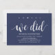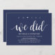 Sim, nós fizemos, cartão de convite para recepção de casamento de fuga. Este cartão de convite temático de casamento de fuga azul-marinho rústico (você pode personalizar todas as cores) é perfeito para a recepção do seu casamento e festa de celebração pós-casamento. Adicione seus detalhes em fonte / letra correspondente.