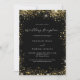 Um convite moderno e elegante para a recepção de casamento. Fundo preto decorado com brilhos dourados falsos. Personalize e adicione seus nomes e detalhes do casamento. Letras brancas coloridas.