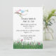 Convites de recepção somente de pássaros amorosos rosa e azul fofos. Pássaros amorosos rosa e azul em um galho com gramíneas e flores na parte inferior. As informações de RSVP estão incluídas no verso, mas se você preferir um RSVP separado, por favor envie um e-mail para shutterbug600@yahoo.com