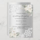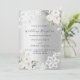 Para um casamento elegante e romântico. Um fundo com aspecto fino prateado decorado com flores brancas, marfim, rosas e rendas brancas. Personalize e adicione seus nomes e detalhes.