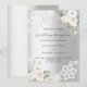 Para um casamento elegante e romântico. Um fundo com aspecto fino prateado decorado com flores brancas, marfim, rosas e rendas brancas. Personalize e adicione seus nomes e detalhes.