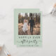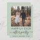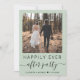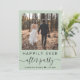 Elegante elopemento verde de sábio ou anúncio de casamento privado e convite para recepções de casamento multifuncional. A frente apresenta sua foto, "Feliz Festa Depois" em uma mistura de simples tipografia e um roteiro de chic com baloiços, e seus nomes e data de casamento ou recepção juntos por um coração. No verso, personalize seus detalhes, insira seu endereço no site do casamento para criar um código de QR para os convidados digitalizarem suas fotos de casamento, todos os detalhes e para RSVP online, e adicione seus nomes em um roteiro semelhante a assinatura.