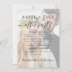 Elegante, anúncio de casamento privado e convite de recepção para anunciar seu casamento para a família e amigos e convidá-los para uma recepção de casamento postada ou festa. Seu anúncio de casamento e convite personalizados sobrepõe sua foto do dia do casamento, e "Feliz Festa Nunca Depois" está escrito em uma mistura de simples tipografia e um roteiro de tendências com pestanas. No verso, adicione uma foto adicional, seus nomes e suas datas de casamento e recepção.