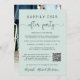 Elegante elopeia verde de menta ou anúncio privado de casamento e convite de recepção. "Feliz Festa Nunca Depois" é escrito em uma mistura de simples tipografia e um roteiro de na moda com pestanas. Personalize sua mensagem e seu convite, insira seu endereço de site de casamento para criar um código QR para seus convidados pesquisarem mais informações e RSVP on-line, e adicione seus nomes em um script semelhante a assinatura. O verso mostra sua foto favorita de casamento, seus nomes e datas de casamento e recepção.