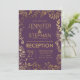 Convites Recepção de casamento Dourada Floral Elegante Púrp